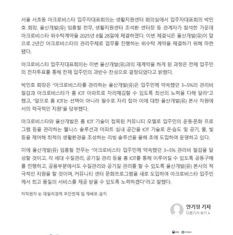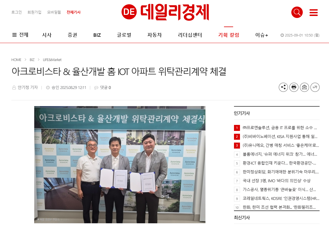 [율산개발]아크로비스타 & 율산개발 홈 IOT 아파트 위탁관리계약 체결